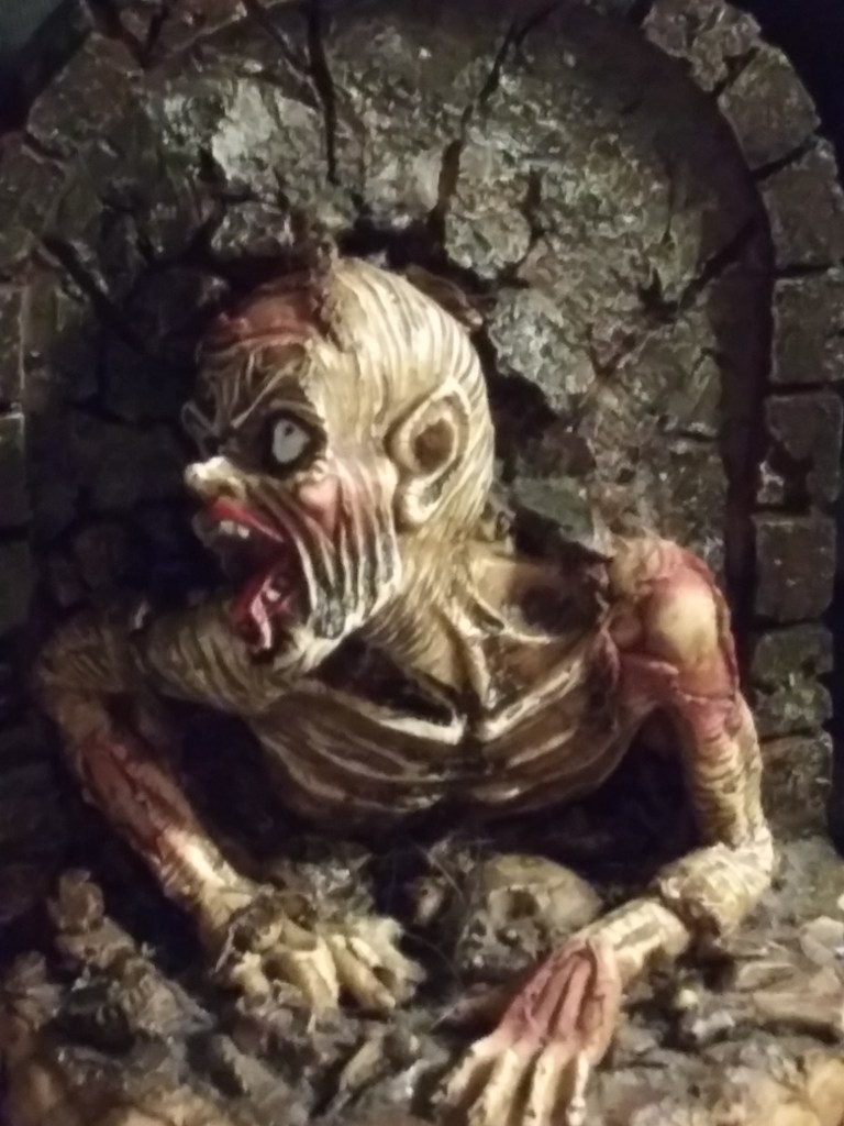 I believe this is my first demon that isn’t a specific named demon. Ghouls are generally thought of as flesh-eaters; they eat dead bodies. I believe they were originally a kind of pre-Islamic demonic entity that like to hang out in cemeteries and desecrate the graves so they can eat, but nowadays they’re typically seen as a type of undead creature. Kind of like zombies, but they usually wait until you’re dead before they start eating you. Some stories depict them as mindless, while others give them enough sentience and cunning to lure victims to their lair to kill and eat at their leisure. Kevin Hearne’s Iron Druid Chronicles feature a group of slightly more benign ghouls, who work as a crime scene cleanup crew. Good, honest work for a ghoul.
